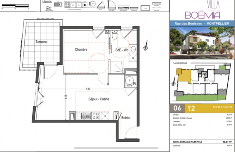 T2 46m2 avec terrasse exposée au calme et parking